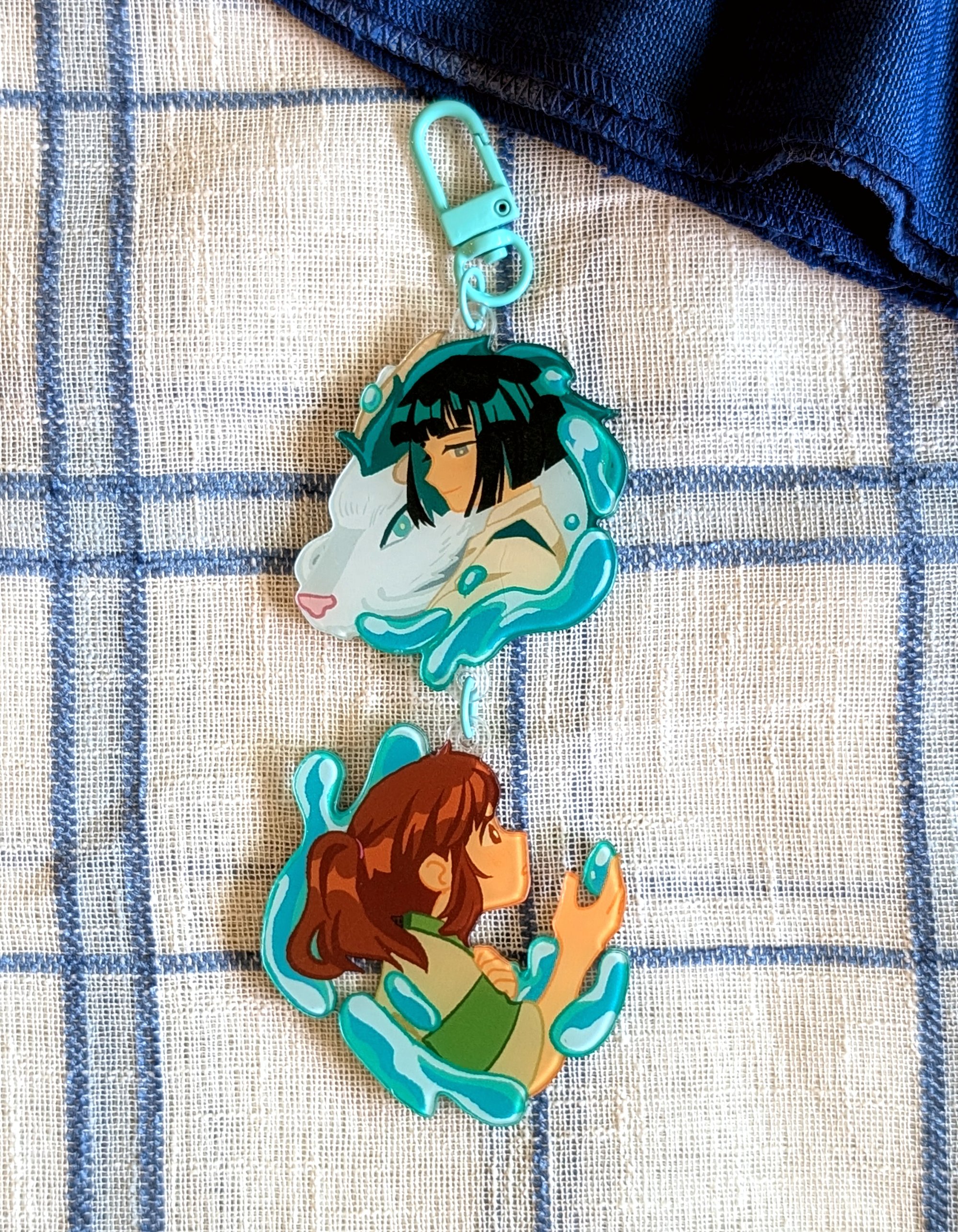 Connecting spirited away charms featuring Haku and Chihiro. Each charm is approximately 2 inches with a combined length of about 5 inches